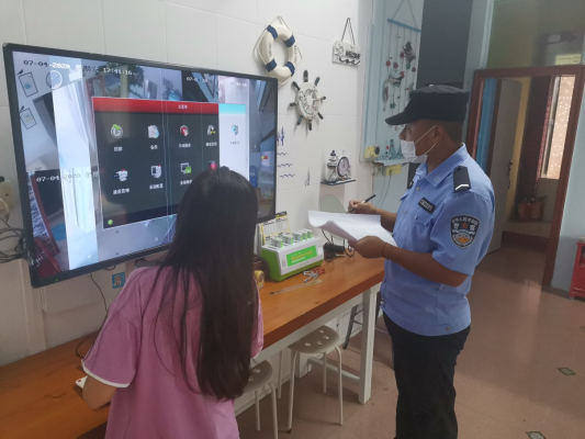 在警务室的学警,也在做着维护公民安全的事。他们走访每一家民宿,进行治安、消防安全检查,消除治安和消防安全隐患,给业主和旅客带来了安全保证。