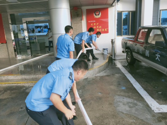 工作之余大家一起给派出所“冲了一个澡”,打扫过后的派出所看上去格外整洁干净。